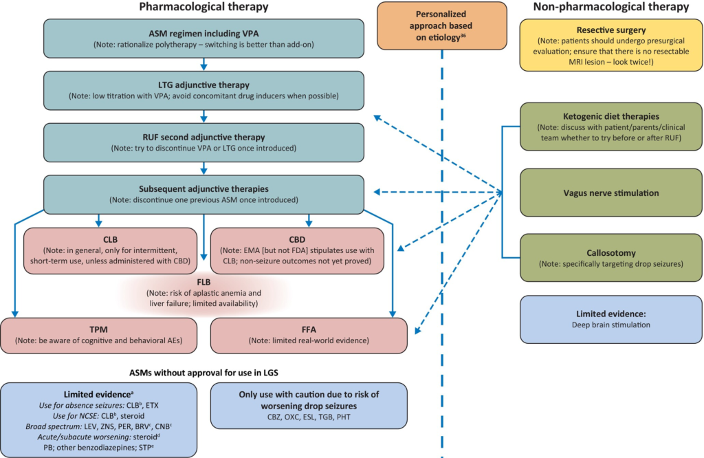 Auvin S, Arzimanoglou A, Falip M, Striano P, Cross JH. Refining management strategies for Lennox–Gastaut syndrome: Updated algorithms and practical approaches. Epilepsia Open [Internet]. [cited 2025 Jan 9];n/a(n/a). Available from: https://onlinelibrary.wiley.com/doi/abs/10.1002/epi4.13075