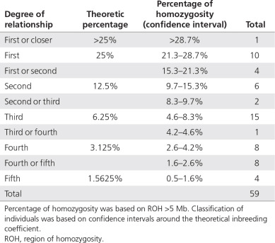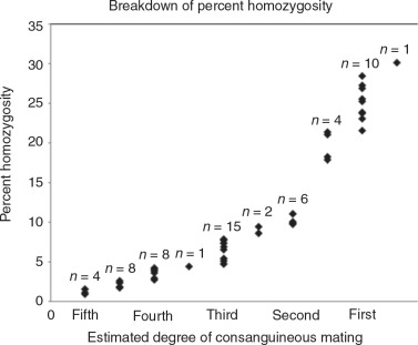 Existe un coeficiente de endogamia (coefficient of inbreeding and coefficient of relationship), que permite calcular la probabilidad de homocigosis en función de la ascendencia, o inferir la presencia de consanguinidad a partir del grado de homocigosis, que puede ser identificado en los SNP arrays (runs of homocigosity). Esto puede dar lugar al desenmascaramiento de relaciones incestuosas y de abuso.